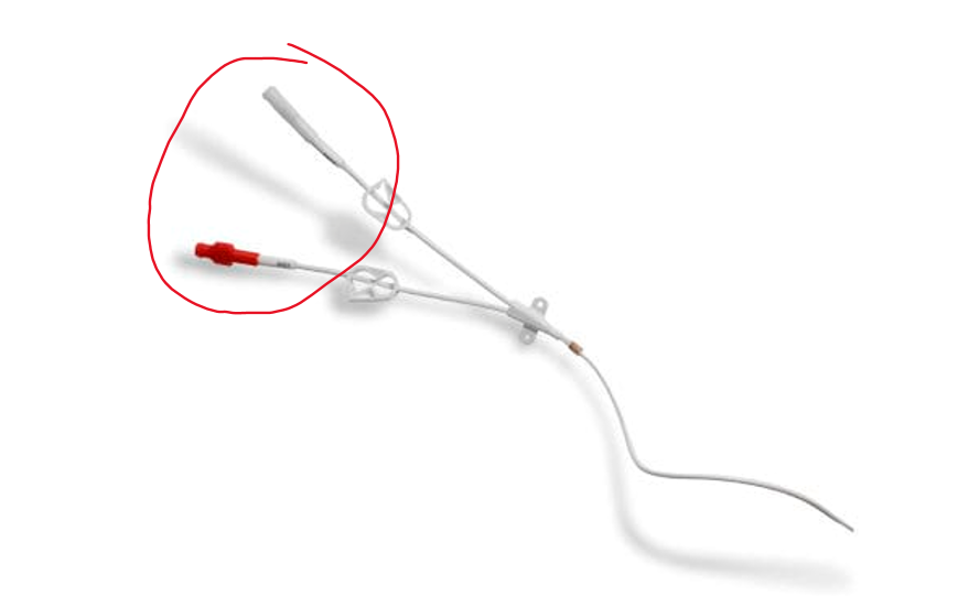 하지만 카테터 길이 때문에 Dacron cuff 가 입구와 멀리 들어가 있다면, Dacron cuff 와 가까운 피부를 국소마취하고 절개해서 Dacron cuff 를 피하조직과 분리 시켜야 합니다.