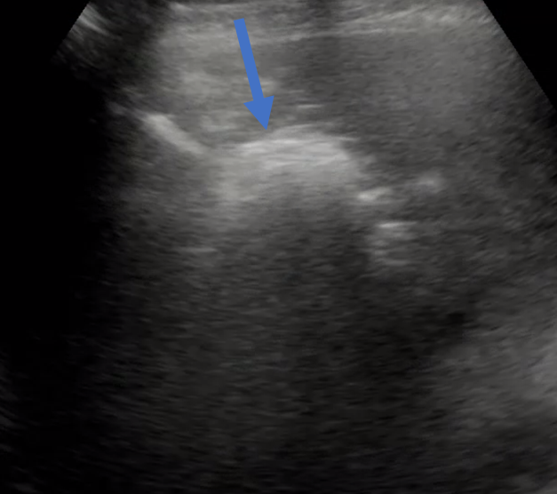 먼저, 초음파를 이용해서 목표로 하는 액체 저류(농양)이 어디서 잘 보이는지 확인합니다.