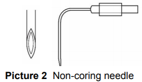 첫째, 바늘을 꽂을 때 구멍이 측방에 설치된 non-coring needle 을 사용해야 합니다.