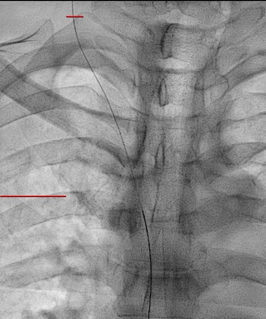X-ray 를 보면서 이 와이어가 적절한 위치로 가는지 잘 봐야합니다.