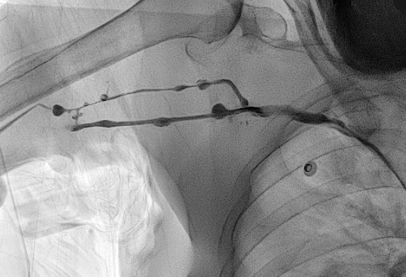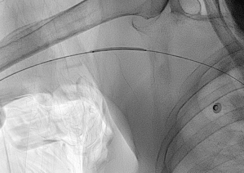 오랜 기간 동안 PICC 를 가지고 계셨거나, 독한 약물 치료를 받으신 분들 중에는 말초 정맥이 막혀버렸거나 아주 좁아져버린 분들이 계십니다. 이 경우 찔렀던 혈관을 그대로 이용하려면 풍선 카테터를 이용하여 혈관성형술을 하거나, 아니면 다른 혈관을 새로 찔러 들어가야 합니다. 두 해결 방법 모두 시간을 늘어지게 하는 방법이지요.