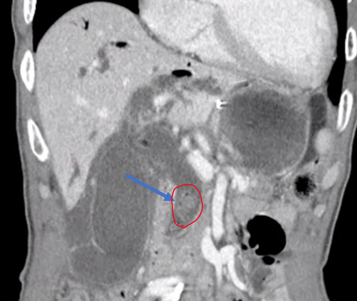 CT 촬영에서 이 환자에게 이 시술이 정말 필요한 상황인지, 시술 자체에 어려움이나 합병증을 유발할 만한 다른 요인은 없는 지 확인합니다.